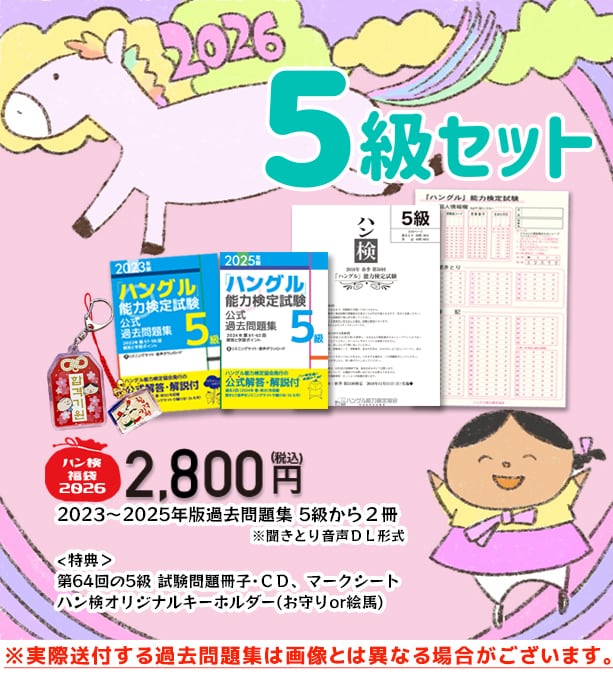 〈特典〉第64回の5級 試験問題冊子・CD付+マークシート、ハン検オリジナルキーホルダーお守りor絵馬(どちらか1つ)