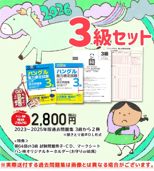 〈特典〉第64回の3級 試験問題冊子・CD付+マークシート、ハン検オリジナルキーホルダーお守りor絵馬(どちらか1つ)